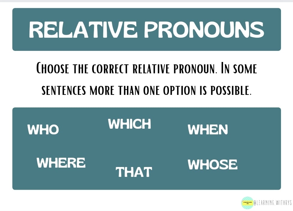 Proyectable or printable cards to practice Relative Pronouns. Group or Individual task. Answer Key included.